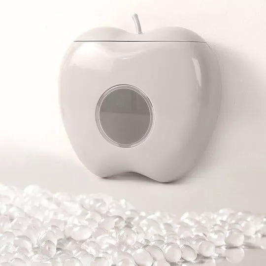 When I saw this, it reminded me of my time in the Mediterranean where we used shower caps as food covers for outdoor eating. Love the bold design of this plastic apple, but it has to be wall-mounted with a sticky attachment. Would be better as a fridge magnet. Stuck it to the fridge and moved it without issues.